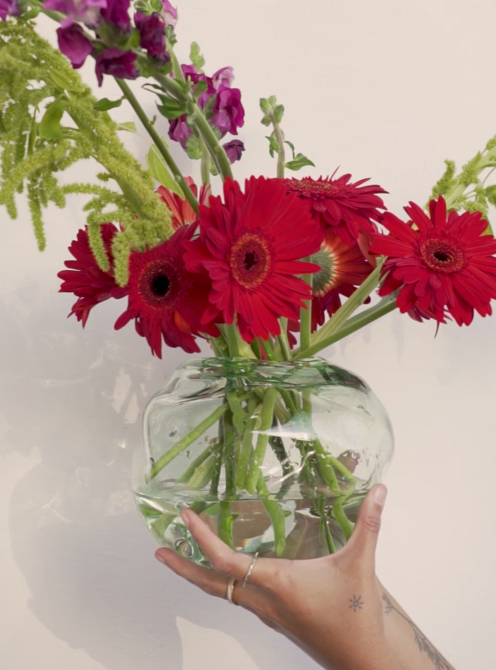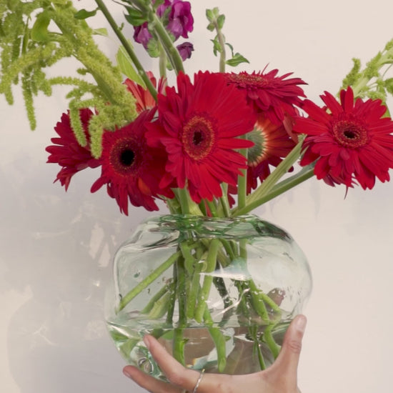 Memoria es un florero mediano de boca pequeña, perfecto para astromelias, crisantemos y gerberas.