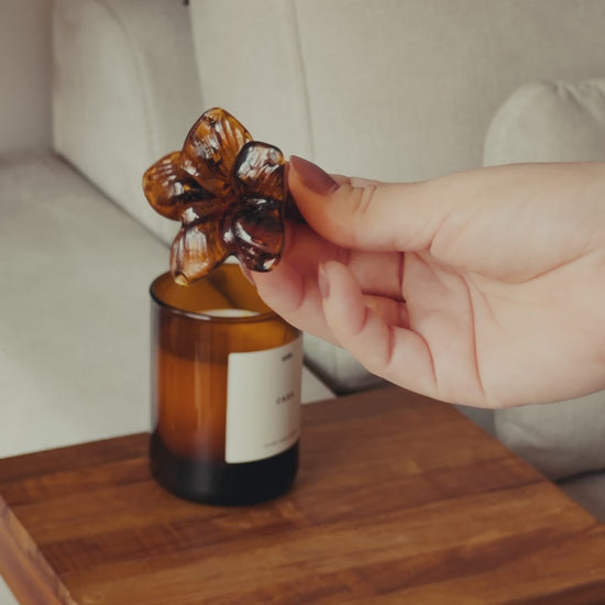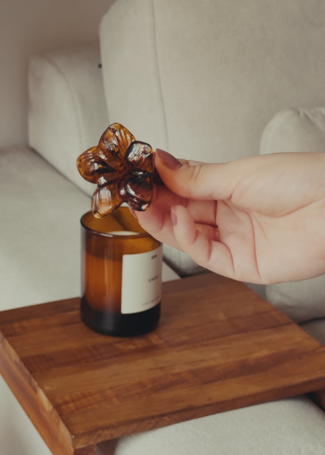 Inspirado en las flores y soplado en vidrio reciclado, es el objeto perfecto para acompañar el final de tu ritual favorito.